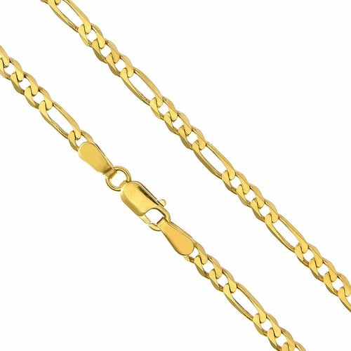 Accompanying this stunning pendant is a complementary 14k yellow gold Figaro chain, measuring 2.2 mm wide, showcasing a gentle concave design. You can select the length that suits you best, spanning from 16 to 24 inches, ensuring a perfect fit for any occasion.