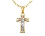 - Genuine 14k Tri-tone Gold 1.45" Cubic Zirconia Fancy Crucifix Necklace 16" to 24