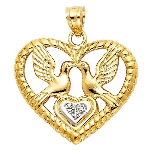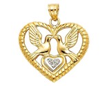- Genuine 14k Two-tone Gold 0.90" CZ Heart Shape Holy Spirit Dove Pendant
