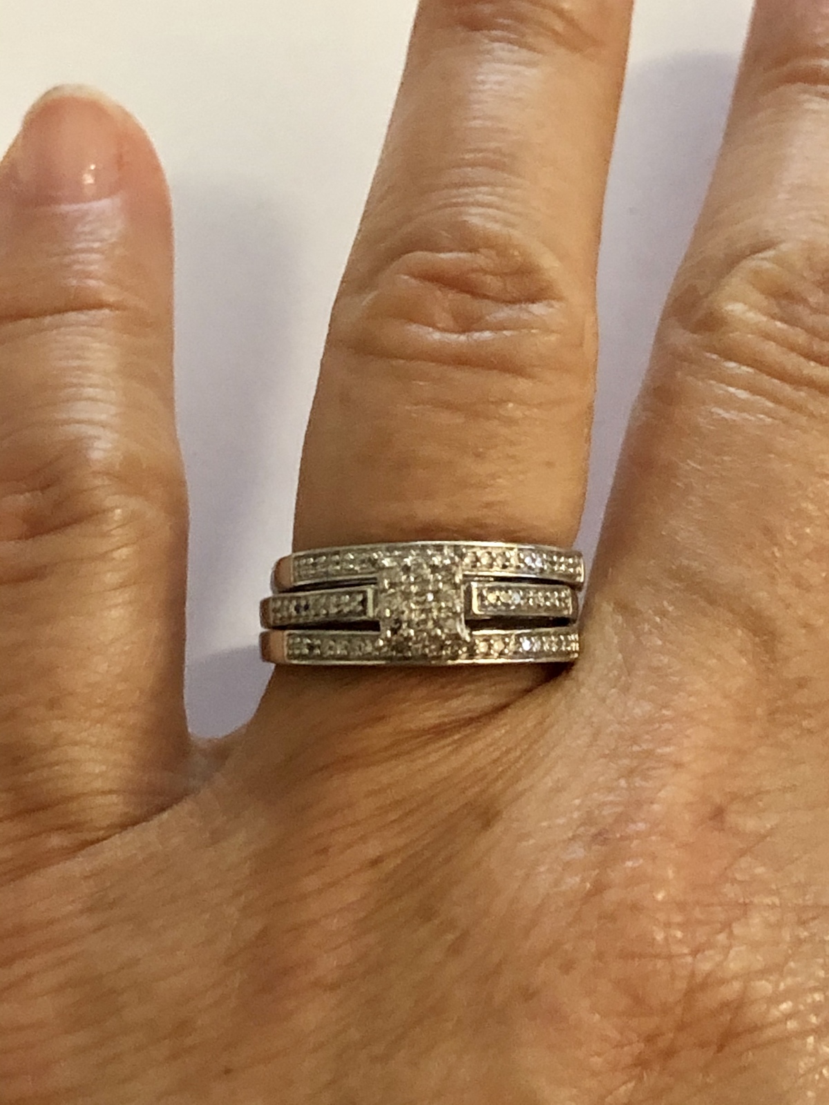 Genuine Diamond Solid Sterling Silver Three Ring Bridal Set Size 6 3/4- NWT in gift box as shown