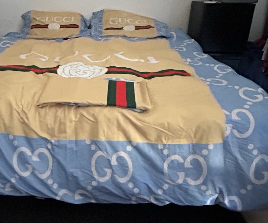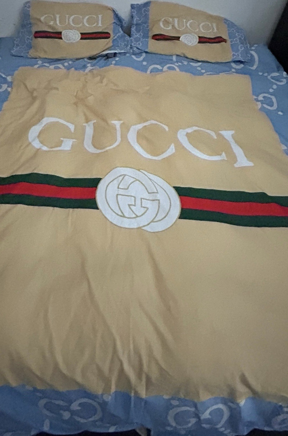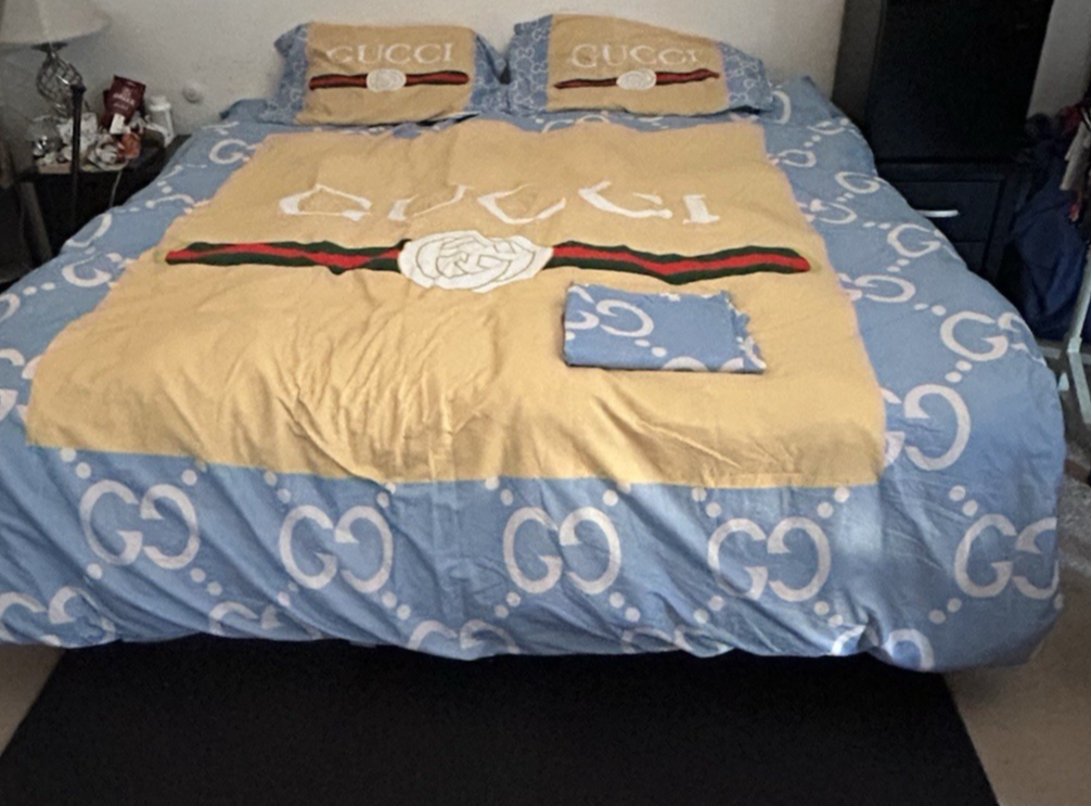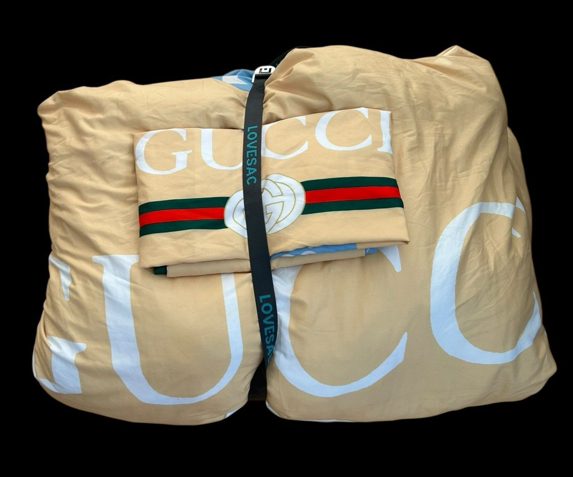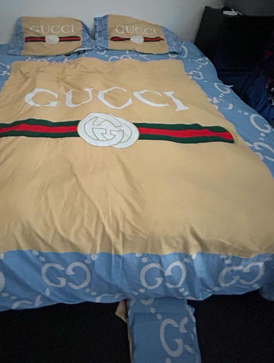 Genuine Gucci Down Alternative King Comforter Blanket +Sheet Pillow Cases -RARE COLORWAY. The back side of this comforter is white.