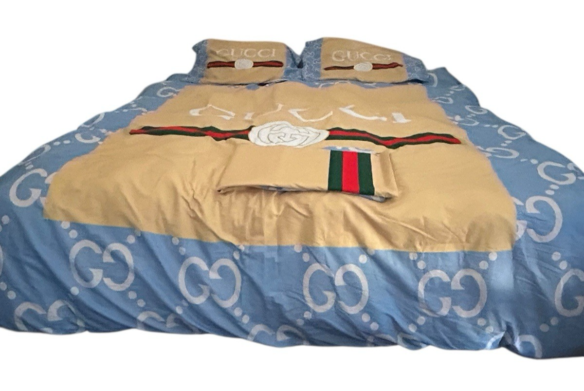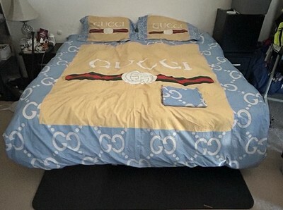 - Genuine Gucci Down Alternative King Comforter Blanket +Sheet & Pillow Cases RARE
