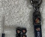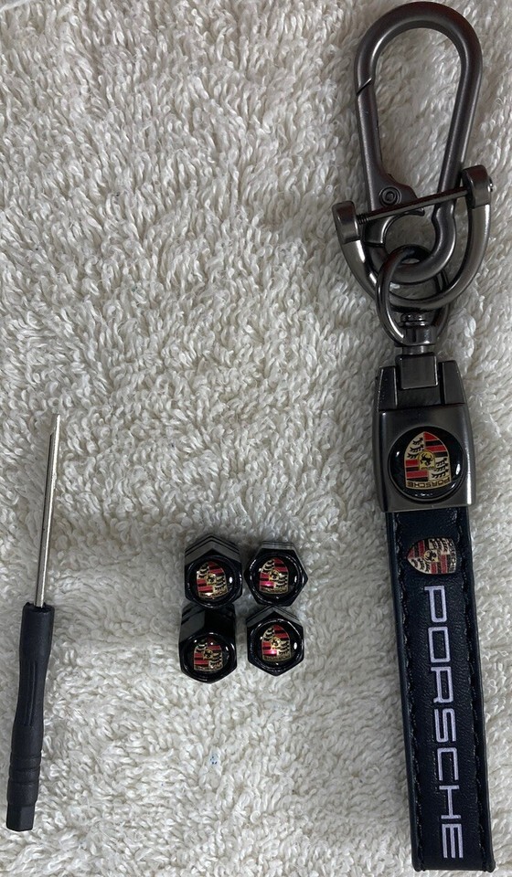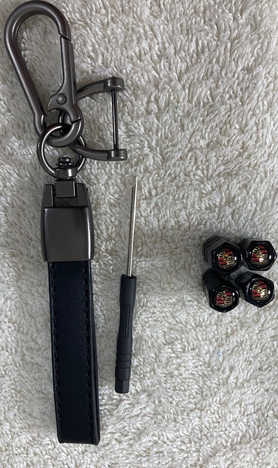 - Genuine Leather Lanyard & Metal Tire Air Stem Valve Covers Set For Porsche