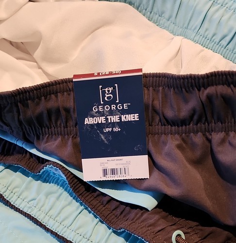 This Sale is for a Pair of GEORGE? Swim Shorts Men's Size SMALL (28/30) AQUA GRAY ~ Colorblock Pattern Inseam measures approximately 7.5" Pull-On Style Elastic Waistband w/Drawstring Relaxed Fit Mesh Liner UPF 50+ Protection Mid Rise Two (2) Side ~ On Seam Pockets ~ Back Pocket w/Velcro Closure 100% Polyester Machine wash ~ Tumble dry Shorts are new with tags Please view photos for a good description of this item Thank you!