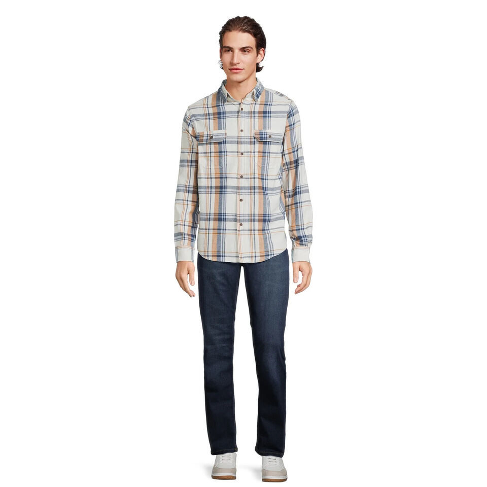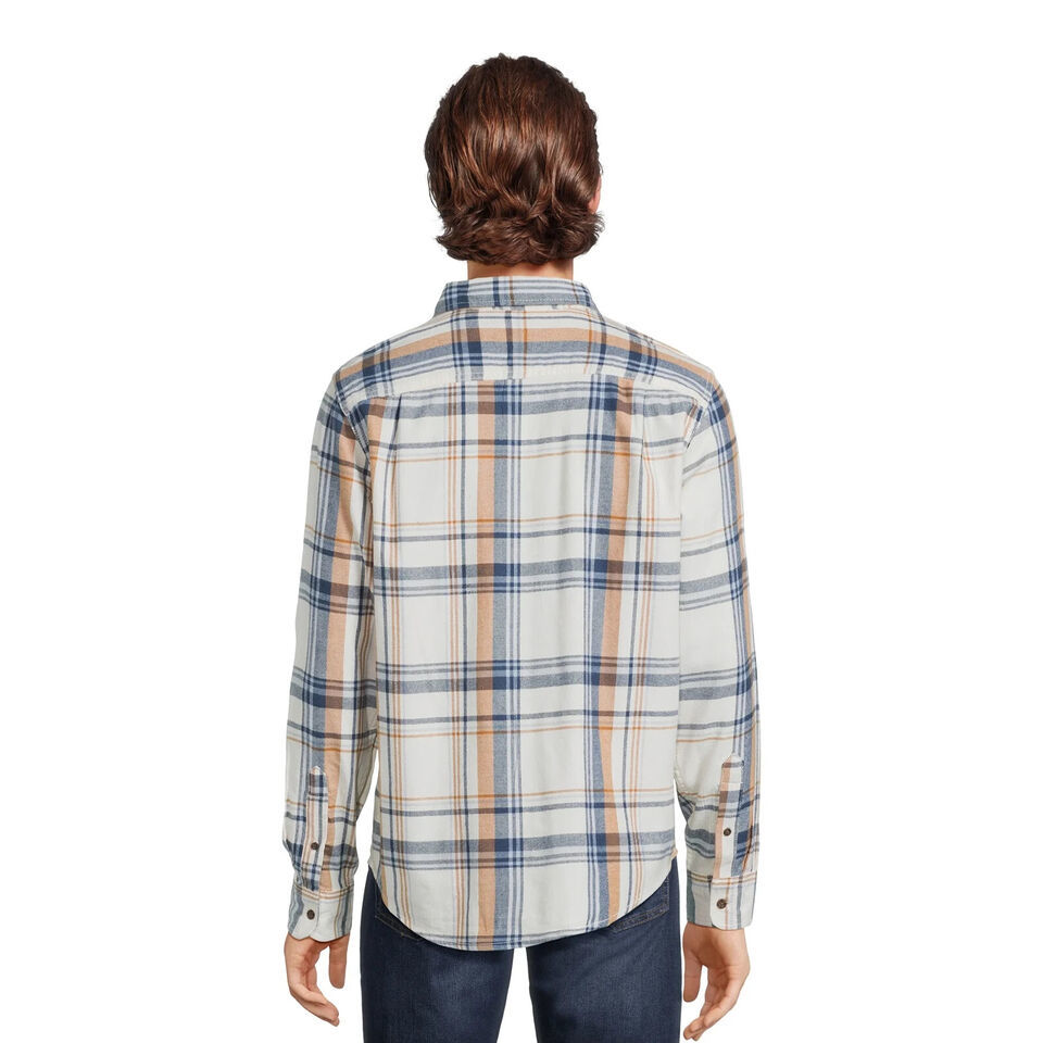 George Men's Long Sleeve Flannel Shirt, Delicate Ivory Plaid Size S(34-36)