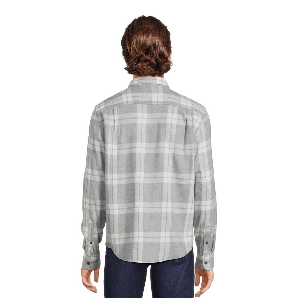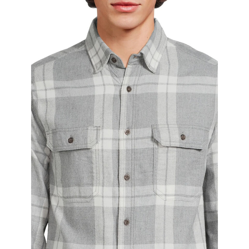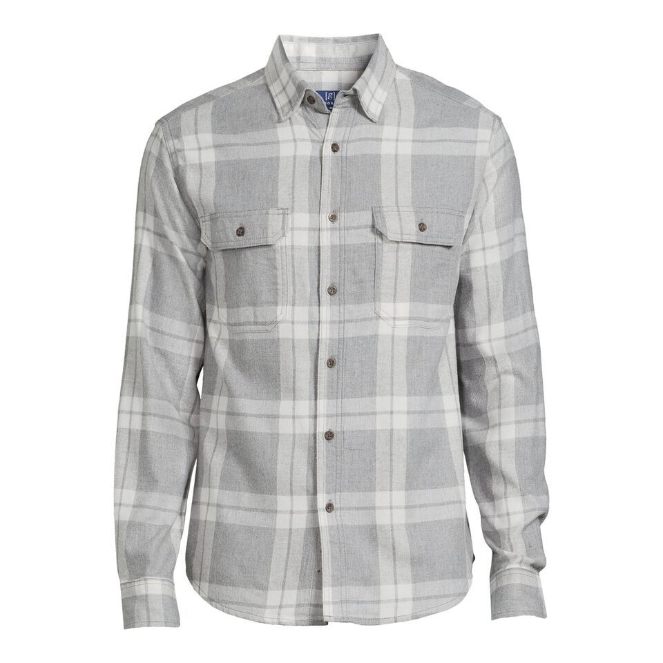 George Men's Long Sleeve Flannel Shirt, Medium Grey Plaid Size S(34-36) The George Men's Long Sleeve Flannel Shirt made from a cotton and viscose fabric for a soft, comfortable fit. A classic flannel shirt is a must-have for every wardrobe. Perfect for cooler days, wear buttoned up with everyday jeans or leave open with a graphic print tee for a more casual look. Material: 55% Cotton/45% Viscose Care: Machine washable Fit: Relaxed Neckline: Point collar Closure: Button front Sleeves: Long sleeves Pockets: Two pockets at chest with button closure Features: Soft fabric for comfort; allover print