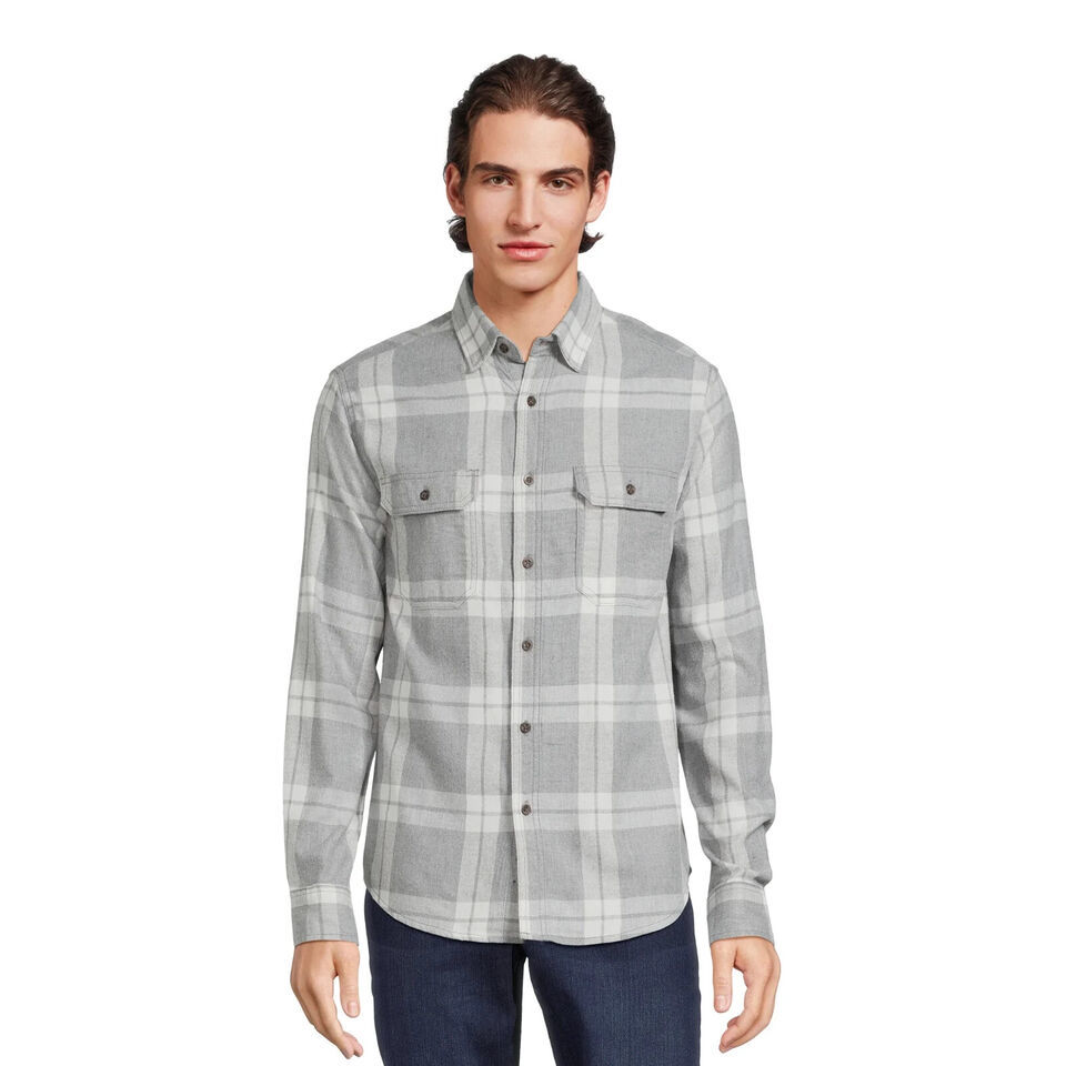 George Men's Long Sleeve Flannel Shirt, Medium Grey Plaid Size S(34-36)