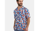 The George Men's Button Front Storm Blue Tropic Print Camp Shirt is a stylish and comfortable addition to any man's wardrobe. Made from Cotton, Rayon, Linen Blend this short sleeve shirt features a collared neckline and button front closure for a classic look. The print adds a fun and tropical touch, perfect for travel, parties, or casual outings. With a relaxed fit and lightweight design, this shirt is easy to care for and great for wearing in the summer, fall, or spring seasons.