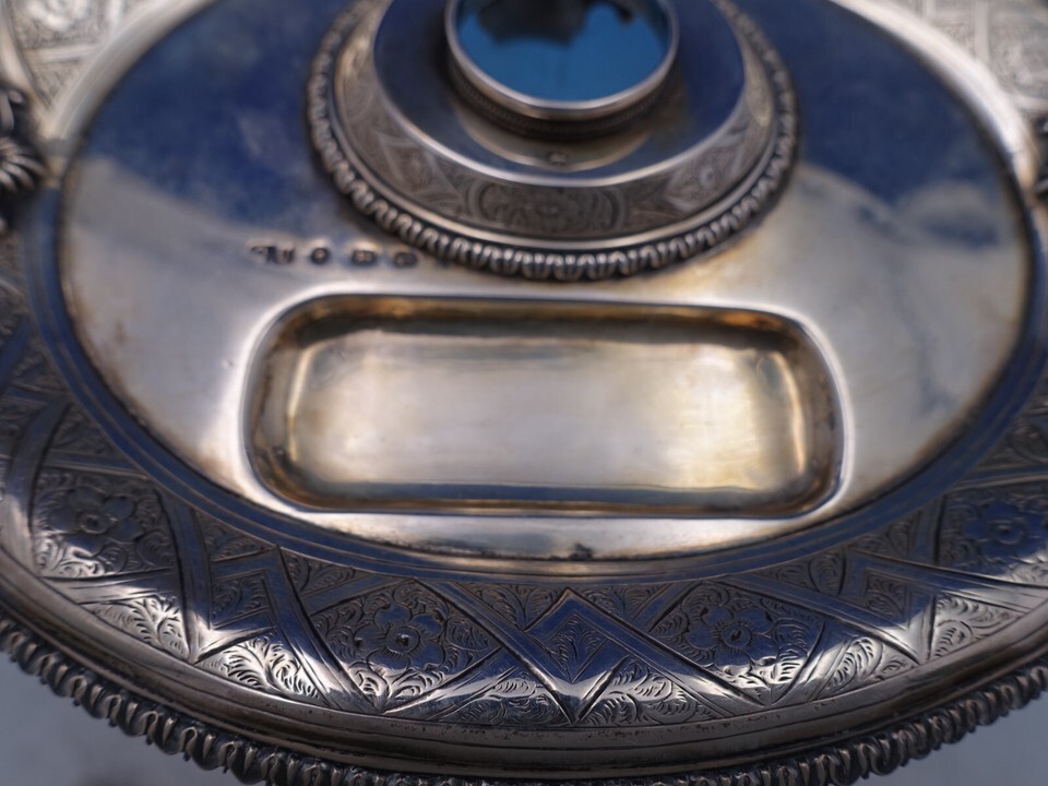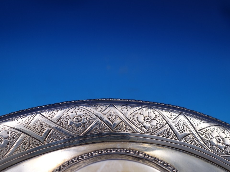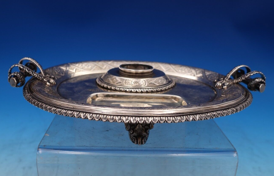 - George Unite Sterling Silver Tray for Inkwell Footed Diapering Border (#7412)