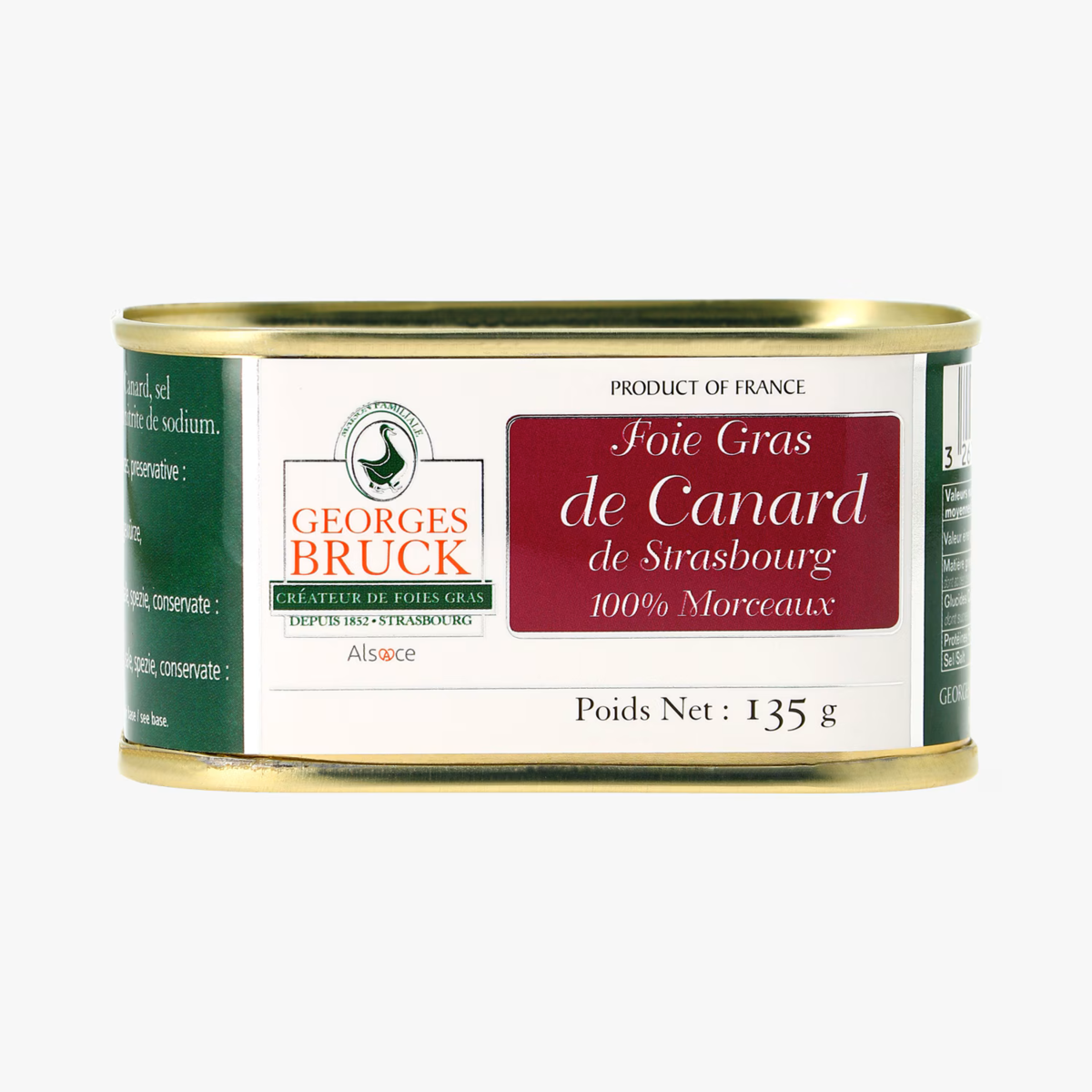 GEORGES BRUCK - FOIE GRAS de STRASBOURG, ALSACE - Duck Foie Gras - Rectangular tin 135gr tin