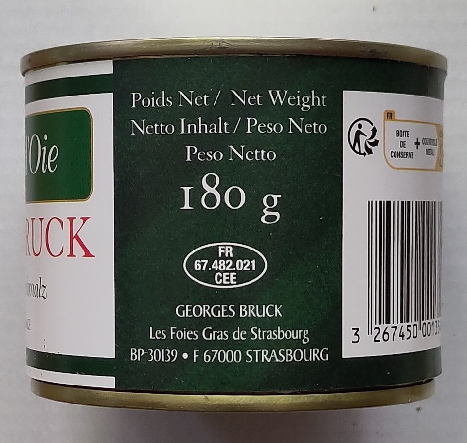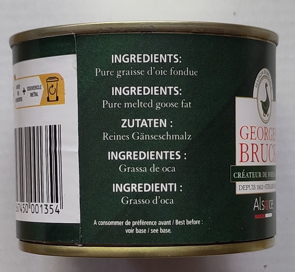 GEORGES BRUCK - FOIE GRAS de STRASBOURG, ALSACE - Goose Fat - 180gr tin