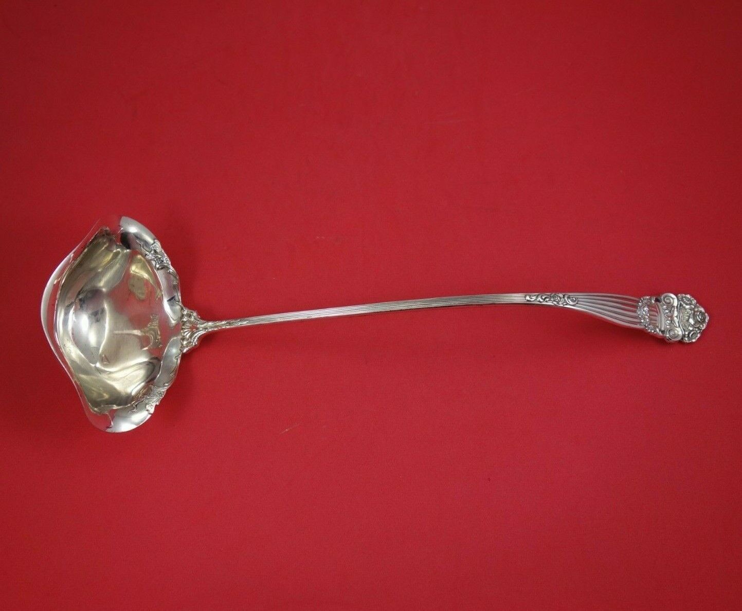 Sterling silver flat handle Punch Ladle Double Spout All Sterling 13 1/2" in the pattern Georgian by Towle. It is monogrammed on the reverse (monos vary) and is in excellent condition.