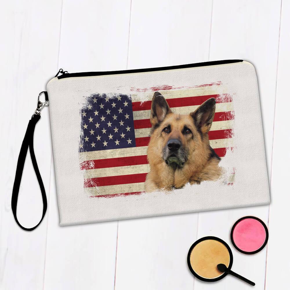 German Shepherd USA Flag : Gift Makeup Bag Dog Pet K-9 United Police America