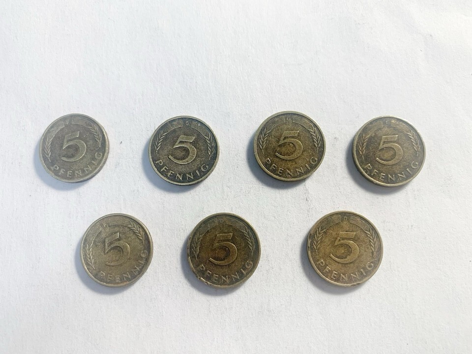 Germany 5 Pfennig Coin Lot 7x Different Years 1980s–1990s Old Coins Set