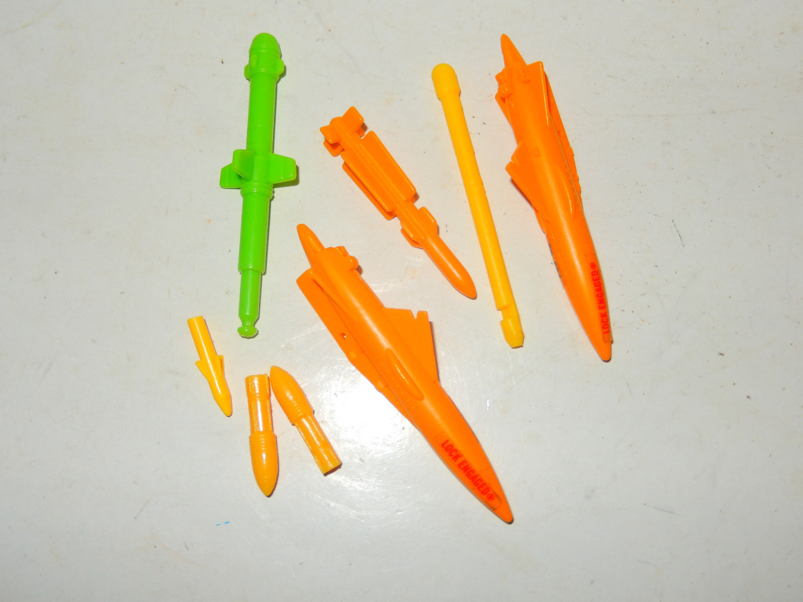8 ASSORTED MISSILES, YELLOW, GOLD, GREEN. SEE PICTURES FOR DETAIL