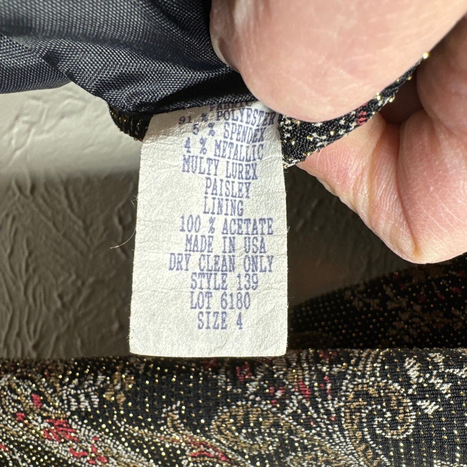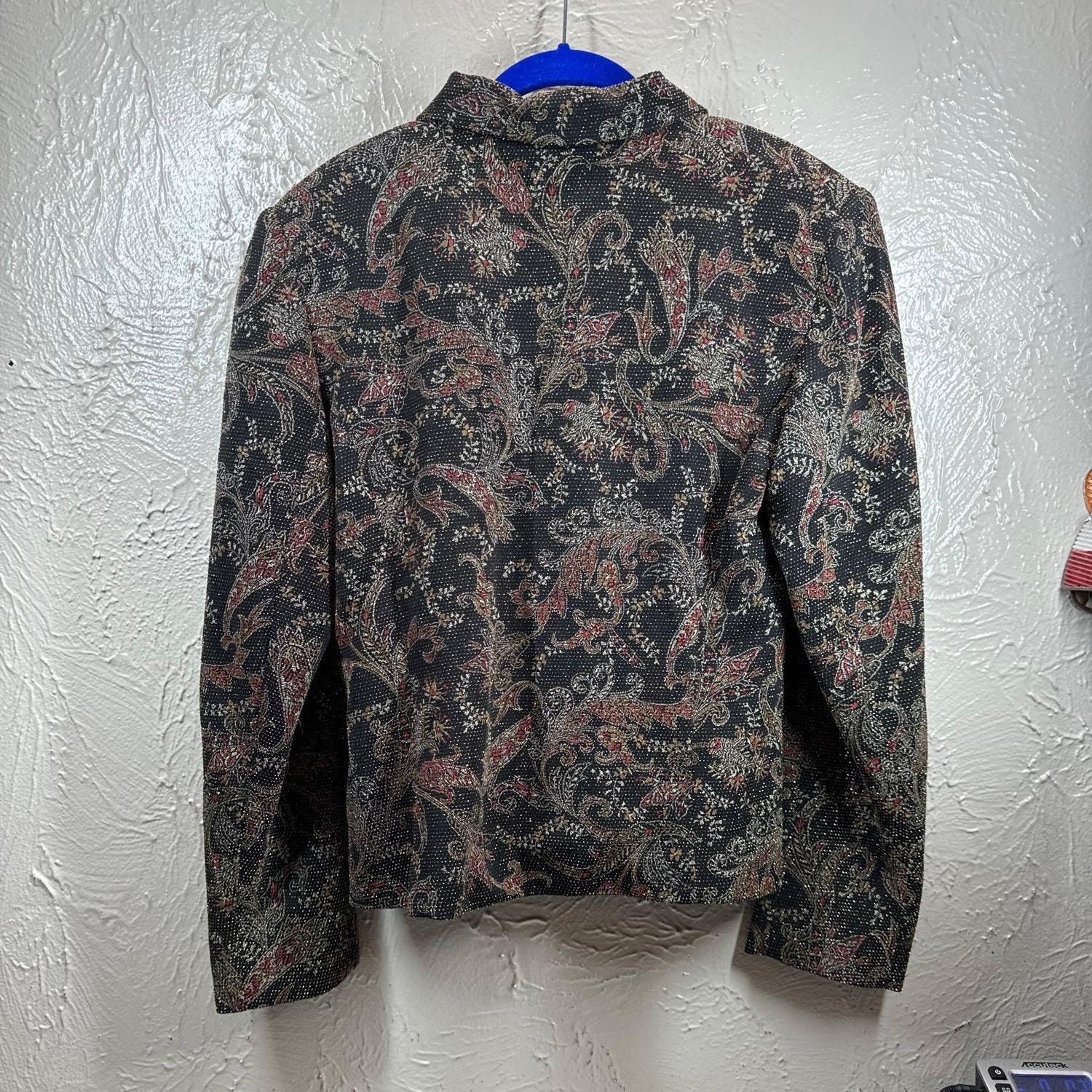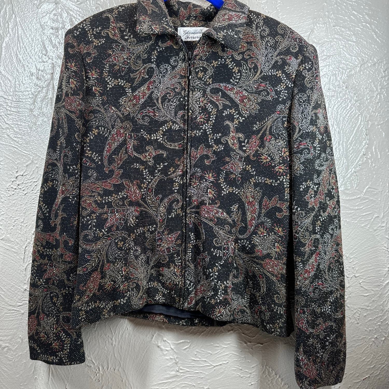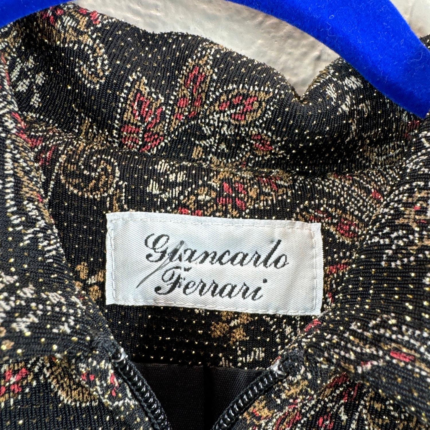 - Giancarto Ferrari Black Paisley Metallic Vintage Zippered Collared Jacket Size 4