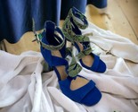 Primary image for Gianni Bini Blue Suede Green Snake Skin 4" Stiletto Sandal Heels 6.5M