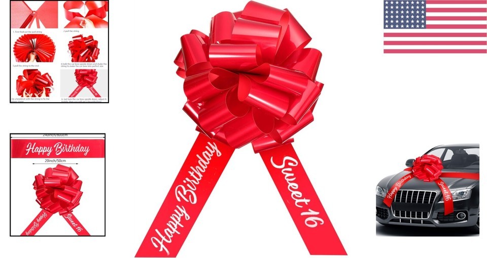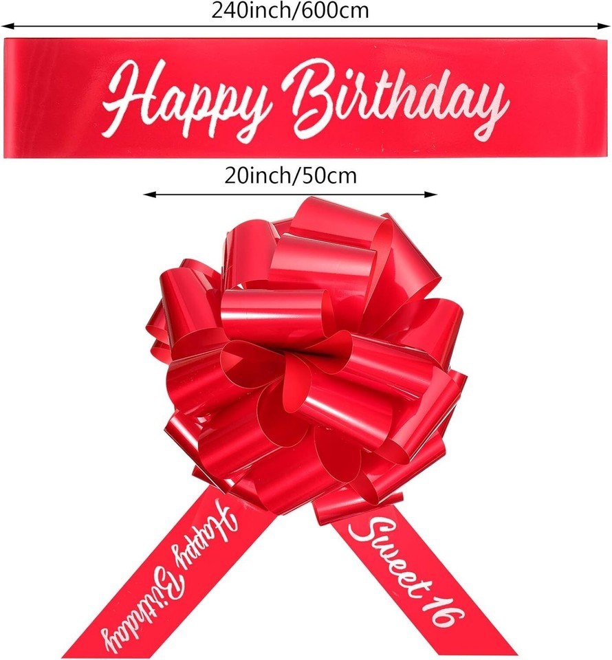 - Giant 20-Inch Happy Birthday Car Bow with 20-Foot Ribbon - Sweet 16 Surprise!
