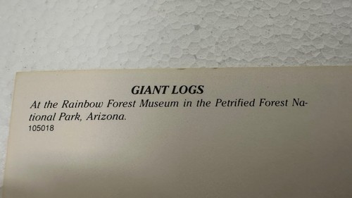 This printed postcard features a stunning image of the Giant Logs at the Rainbow Forest Museum in Petrified Forest National Park, Arizona. The postcard is a single unit and has not been posted. The item is a topographical postcard with a theme of National Parks, and it was manufactured in an unknown country/region.