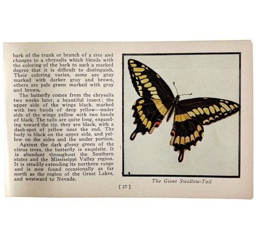 Giant Swallow Tail Butterfly 1934 Butterflies Of America Insect Art PCBG14B