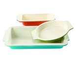 The ColorSplash Imbue 3 Piece Bakeware Set is ideal for preparing all sorts of delicious baked concoctions. The ceramic nonstick interior ensures easy food release and cleanup. The thick walls allow for even heat distribution for perfect browning while your baked goods are in the oven.