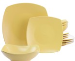 Gibson Home Zen Buffetware 12 Piece Square Fine Ceramic Dinnerware Set in Matte Yellow