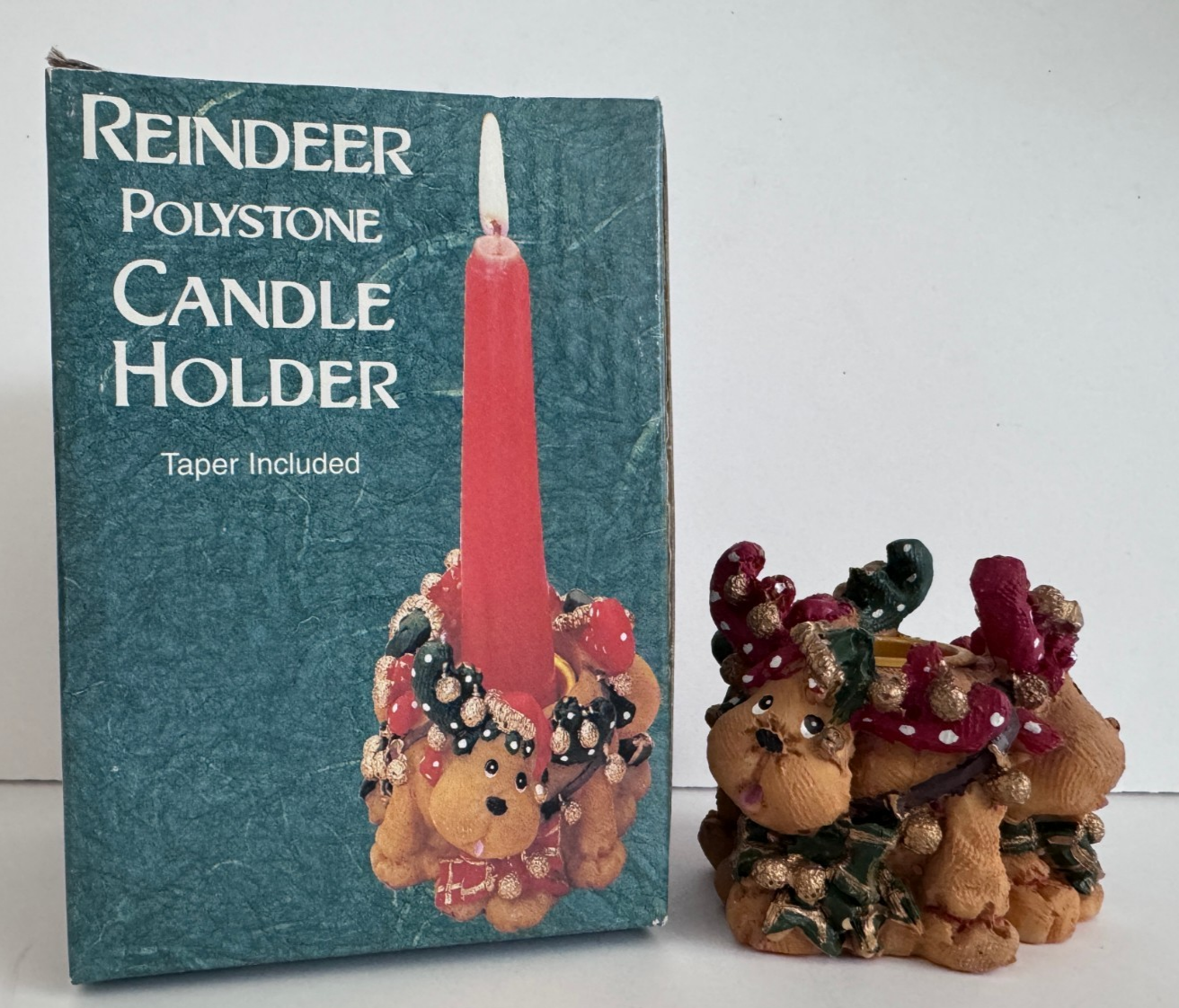 Giftco Inc. Christmas Reindeer Polystone Candle Holder New In Package Measures approx 2.5 inches tall Base of approx 2.5 inches in diameter