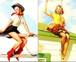 The product is a lot of 2 6"x4" canvas postcards featuring reproductions of Gil Elvgren's 1994 sexy pin-up art. The postcards were manufactured in the United States. This collectible set would be a great addition to any pin-up art enthusiast's collection, showcasing the iconic and alluring style of a bygone era with a contemporary twist.