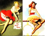 The product is a lot of 2 6"x4" canvas postcards featuring reproductions of Gil Elvgren's 1994 sexy pin-up art. The postcards were manufactured in the United States. This collectible set would be a great addition to any pin-up art enthusiast's collection, showcasing the iconic and alluring style of a bygone era with a contemporary twist.