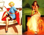 The product is a lot of 2 6"x4" canvas postcards featuring reproductions of Gil Elvgren's 1994 sexy pin-up art. The postcards were manufactured in the United States. This collectible set would be a great addition to any pin-up art enthusiast's collection, showcasing the iconic and alluring style of a bygone era with a contemporary twist.