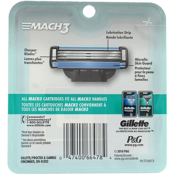 You are Buying a brand New And Factory Sealed Gillette Mach3 Razor Blade Cartridges, 4 Ct.. Gillette MACH3 men?s razor blade refills feature stronger-than-steel blades that stay sharper longer (vs. Sensor3). New product. Comes in original retail packaging. Box may show wear. With sharper blades (first 2 blades vs. Sensor3), it is engineered to last for 15 comfortable shaves. These Gillette razors feature a lubrication strip that glides to help protect your skin from redness A microfin skin guard that stretches the skin, and prepares hair to be cut. MACH3 men's razor blade refills.