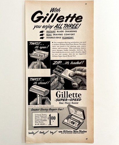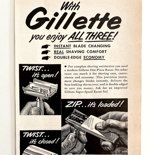 Gillette Shaving Razors Blue Blades Advertisement 1949 Super Speed DWS6A