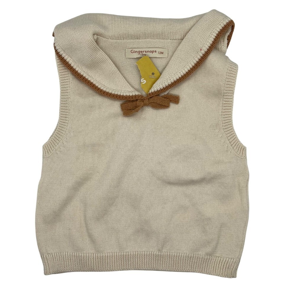 Primary image for Gingersnaps Baby Marina Sailor Knit Sweater Vest Bow Collar Beige Cotton NWT