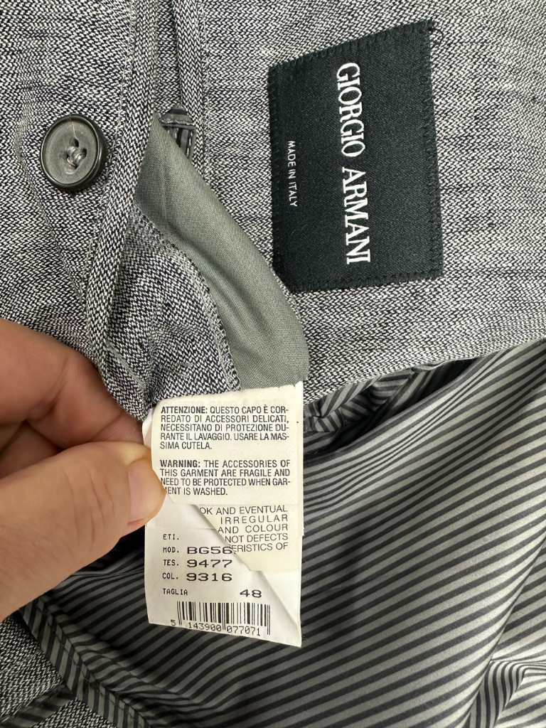 GIORGIO ARMANI Unlined S/B Gray 100% Linen Suit Size 48R IT / 38R - 32 Waist New never worn but the tags have been removed Please let us know if you require any measurements We guarantee authenticity of all the items we sell Comes as shown