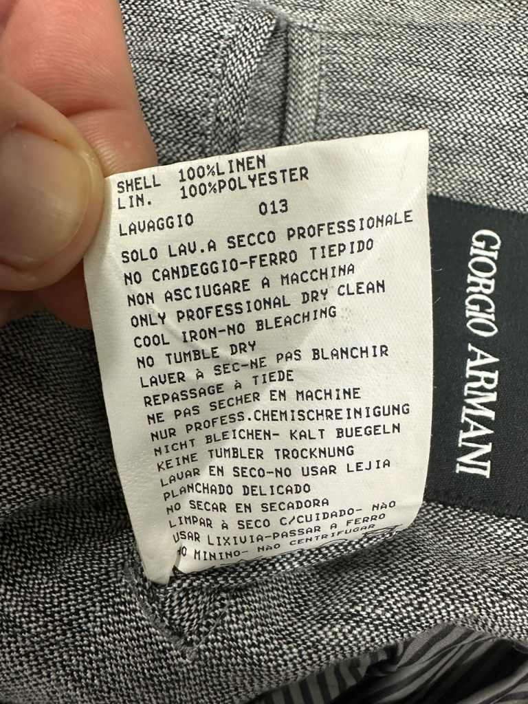 - GIORGIO ARMANI Unlined S/B Gray 100% Linen Suit Size 48R IT / 38R - 32 Waist