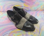 Giorgio V. Men's Sq. Toe Leather Tweed Upper Black Dress Shoes, Buckle, Sz 12