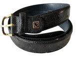 Genuine ostrich leather belt in DARK NAVY (photographs black due to light variation). Handmade. Slight loss of color to the buckle. The leather part is in good condition, with the last several inches of belt ending (where the holes are) - are softer than the remaining part of the belt. A couple of small snugs to the leather but overall good to very good condition.