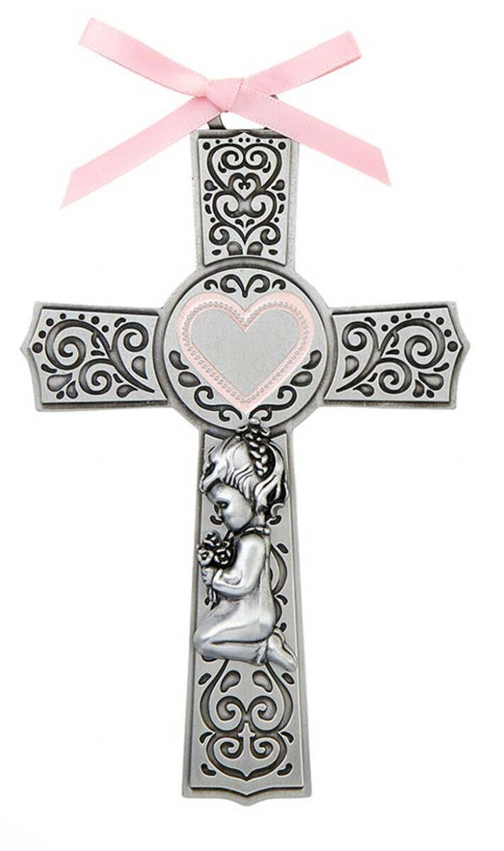 You are purchasing a very nice girl's pink crib cross with a pink heart on the center of the cross.