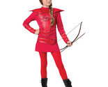 Red dress with attached cuffs and printed emblem on the bodice, belt with satchel and leggings. Bow and arrow set and shoes not included.
