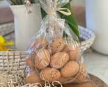 Gisela Graham Speckled Easter Egg Decoration - Bag of 12 assorted A lovely Easter hanging decoration by Gisela Graham. Each egg has a string for hanging. All eggs vary in sizes ranging between 5cm and 7cm Size of a bag approx: 27x14cm Whether you use them to jazz up cupboard and dresser door knobs, hang them from shelves or in windows and fireplaces, or scatter them among the branches of trees and bushes in the garden, they are simple yet effective way of putting a little spring in the step of your Easter festivities! 90% Plastic, 10% Straw