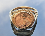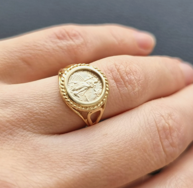 - GL VINTAGE 10 K YELLOW GOLD 5 DOLLAR LIBERTY COIN COPY RING SIZE 6.75