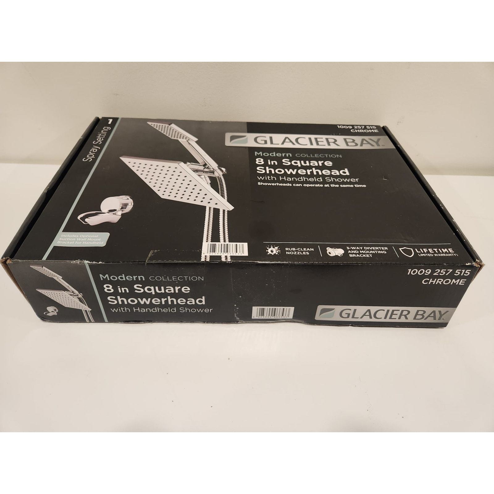 New open box Glacier Bay dual tub wall-mount shower head kit