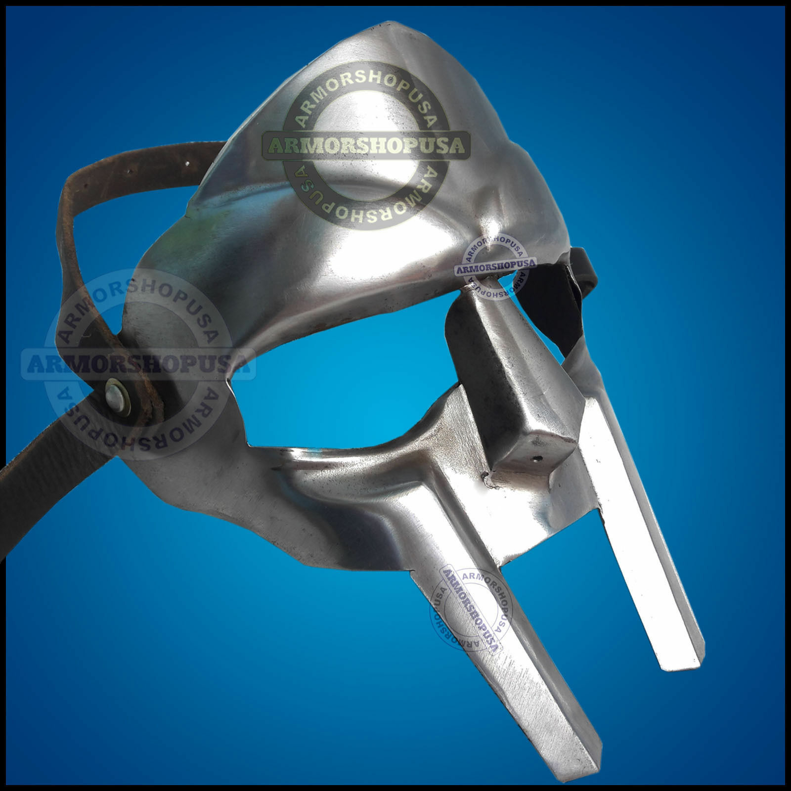 Hand Forged by Skilled Artisan, 18 Gauge Low Carbon Iron Steel, Comes With Pre-Fitted 100% Genuine Leather strap, Classic design allows for easy breathing and visibility, Good for re-enactment and display purposes. This item is Inspired by the armor worn by 300 King Leonidas gladiators battling in the great arena of Sparta, this mask features great style and attitude! Also great for any fan of hip-hop artist MF Doom, as this is the mask he wears when performing. Either way, you can't go wrong with this mask. It is much higher quality than others you may have seen out there.