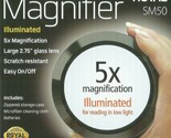 FOR SALE IS ONE (1) NEW 5x (five power) LARGE ROUND MAGNIFIER LOUPE made of Real Glass MANUFACTURED BY ROYAL CONSUMER INFORMATION PRODUCTS MPN SM50 ALTERNATE MPN 69190P UPC# 022447691900. GENEROUS 2 3/4" diameter REAL GLASS LENS IS SCRATCH RESISTANT. THIS FIVE POWER (5X) HIGH QUALITY MAGNIFIER LOUPE FEATURES THREE (3) LED LIGHTS TO ILLUMINATE YOUR VIEWING AREA. USES TWO (2) CR2016L WAFER TYPE BATTERIES WHICH ARE INCLUDED. THIS HIGHEST QUALITY MAGNIFIER BY ROYAL ALLOWS FOR USE IN LOW LEVEL LIGHTING, EVEN IN BED. JUST PRESS THE LED LIGHT ACTIVATION RING ON TOP FOR ON, AND AGAIN FOR OFF. THE THREE LED LIGHTS WILL TURN OFF AUTOMATICALLY IN TEN MINUTES ALSO. THIS GREAT MAGNIFIER IS IDEAL FOR READING, MAP, NEWSPAPERS, LABELS, JEWELRY, STAMPS, WHEREVER A LOW(er) LEVEL MAGNIFICATION IS REQUIRED. REDUCE EYE STRAIN AND SQUINTING, ALLOWS FOR HANDSFREE VIEWING, JUST MOVE THE MAGNIFIER OVER THE AREA YOU WANT TO MAGNIFY. MADE BY ROYAL CONSUMER INFORMATION PRODUCTS INCORPORATED (makers of the royal typewriter and royal scales). MANY MAGNIFYING GLASSES SOLD ARE NOT GLASS. ISN'T THAT JUST PLAIN CRAZY. THIS RELIABLE MAGNIFYING LOUPE IS REAL GLASS AND ALLOWS YOU TO READ SMALL PRINT WITH BOTH EYES. STURDY AND LIGHTWEIGHT, INCLUDES A HARD FIBER ZIPPERED STORAGE CASE, CLEANING CLOTH AND BATTERIES. THIS MAGNIFYING LOUPE LETS YOU READ SMALL PRINT EASILY, PERFECT FOR MAPS, SMALL PRINT OWNERS MANUALS, LIMITED VISION, ETC. YOU WILL RECEIVE ONE (1) REAL GLASS 5x MAGNIFYING LOUPE SHIPPED BY USPS.....