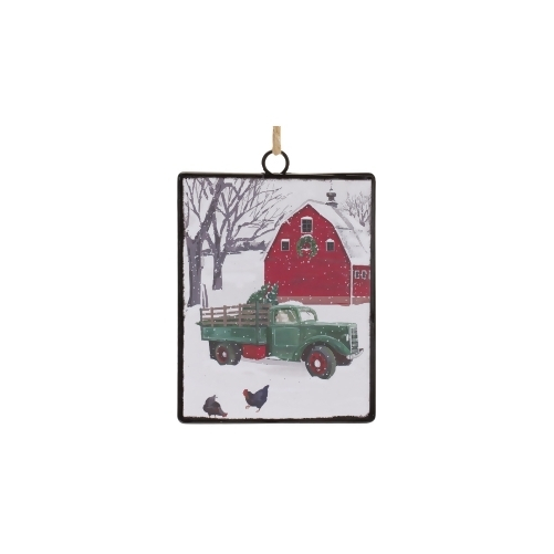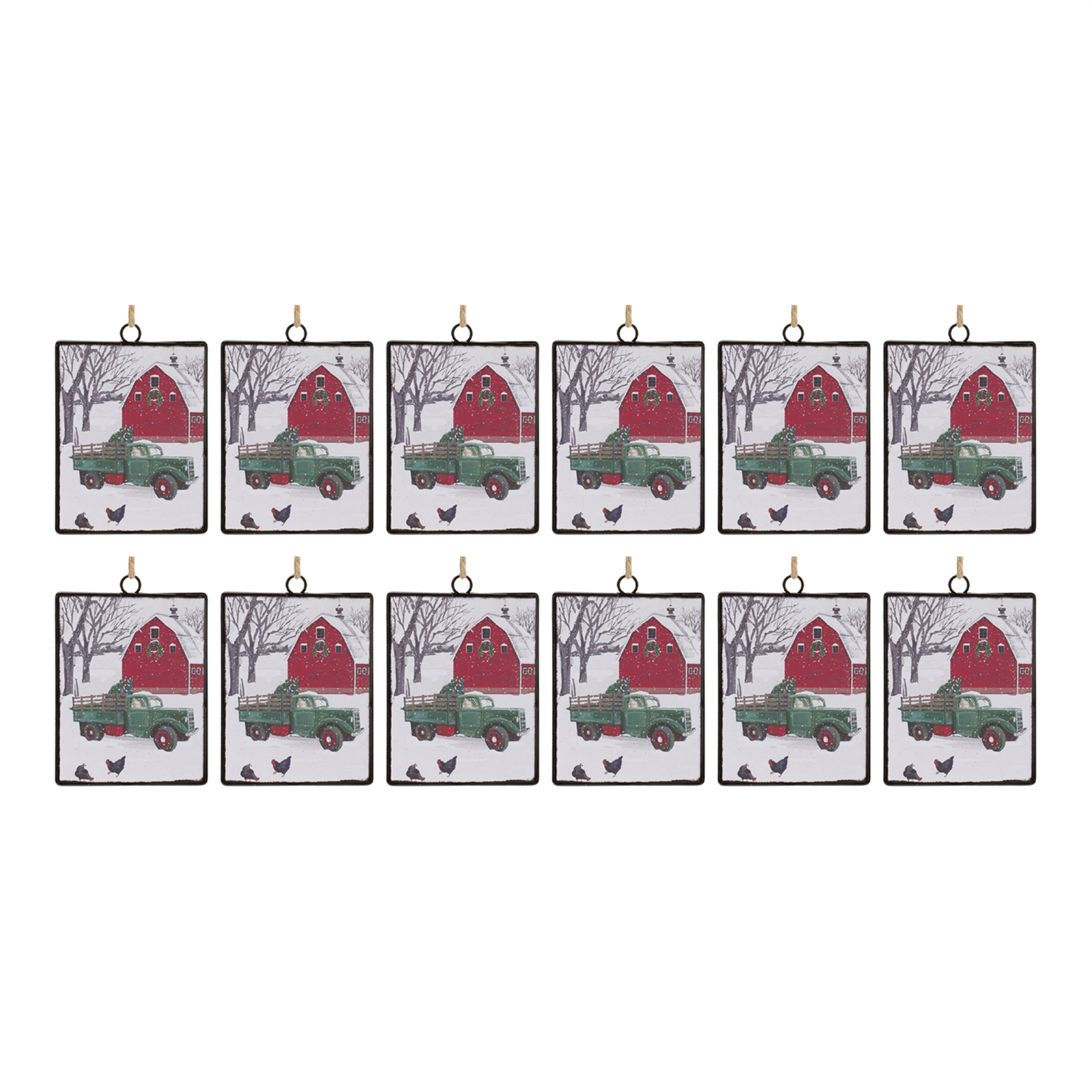 Bring a rustic, heartwarming touch to your Christmas tree with this charming set of Glass Truck and Barn Ornaments. Featuring vintage red, white, and green hues, each ornament is delicately painted with a festive winter barn scene, complete with a pickup truck and chicken accents. Crafted from high-quality glass and finished with a jute string hanger, these ornaments are built to last for seasons of enjoyment. Perfect for holiday decorating or as a thoughtful gift for loved ones, this set will infuse your home with warmth, cheer, and timeless holiday spirit. Sold in a collection of twelve matching pieces to create a balanced display on your Christmas tree.
