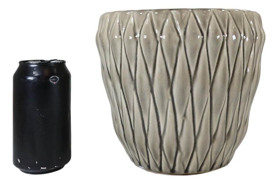 - Glazed Pottery Ceramic Diamond Pattern Floral Grey Vase Planter Pot Gardening
