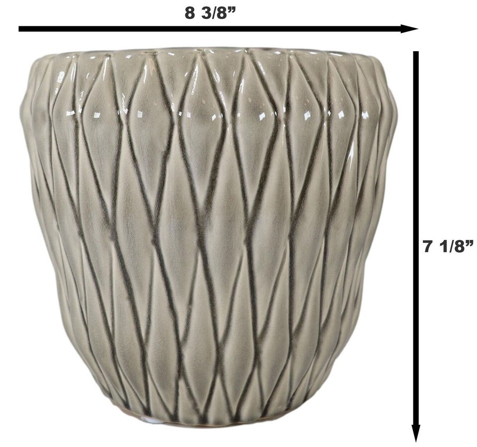 Glazed Pottery Ceramic Diamond Pattern Floral Grey Vase Planter Pot Gardening