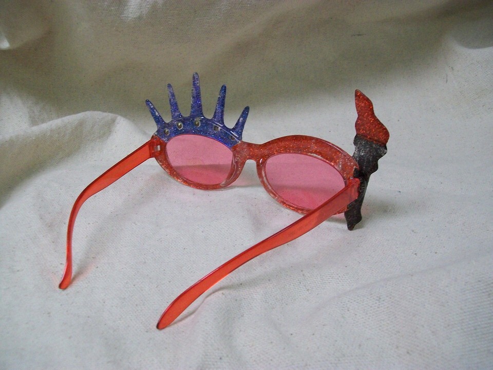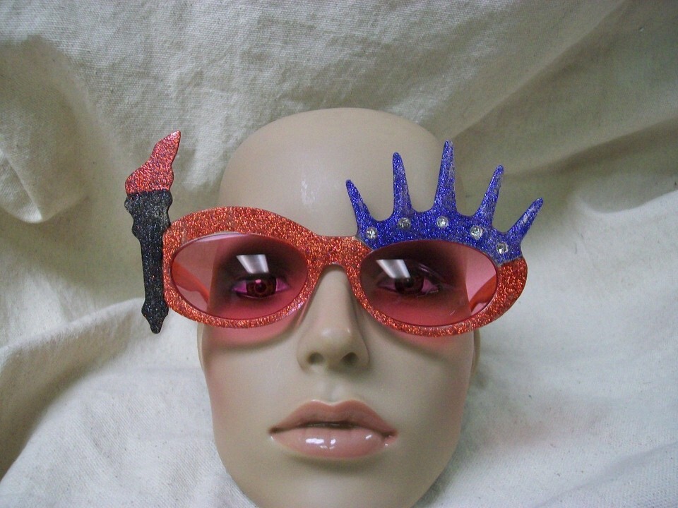 Glittery Patriotic Themed Statue of Liberty Costume Glasses. Novelty Sunglasses for cosmetic dress up use. Does not provide any vision correction or sun protection.