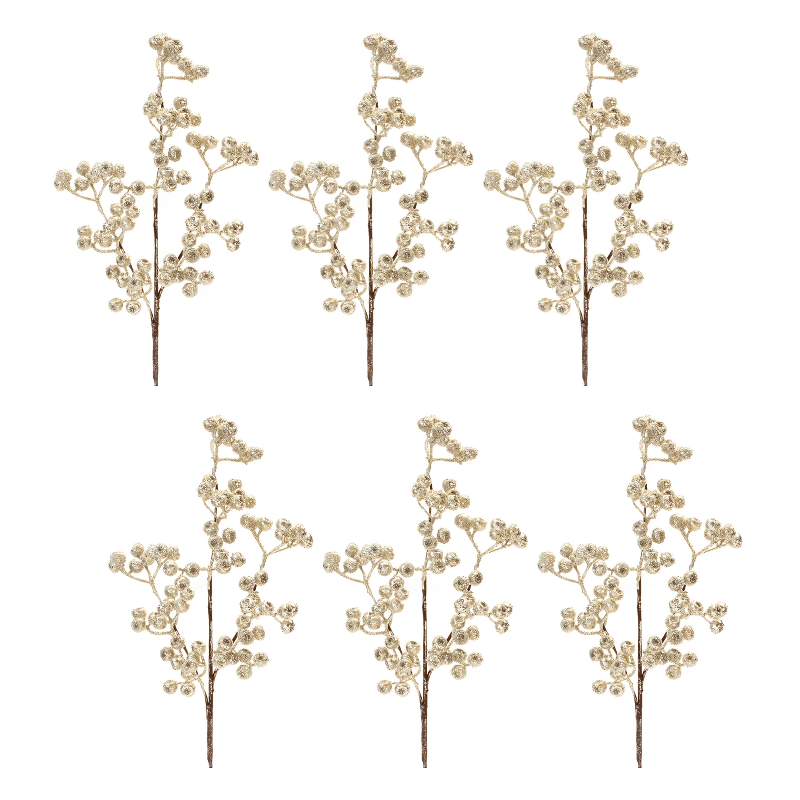 Elevate your holiday decor with this stunning set of Glittered Silver Berry Sprays. Featuring festive silver tones and shimmering glitter accents, these sprays add a touch of elegance and sparkle to any Christmas display. Crafted from high-quality plastic, foam, and iron wire, they are designed to last season after season. Arrange them in a vase for a striking centerpiece, weave them into a wreath, or add them to a garland for an extra festive touch. Perfect for enhancing your home s holiday ambiance or gifting to a loved one, these berry sprays are a must-have for the season. Sold in a set of six pieces to make a statement in any holiday seasonal display.