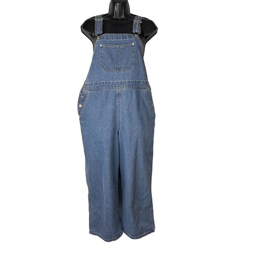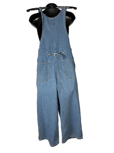 Gloria Vanderbilt VTG Y2K Bib Jeans Overalls Wide Leg M Blue Denim Pocket